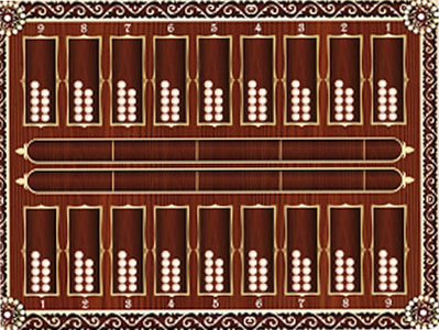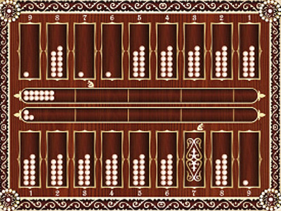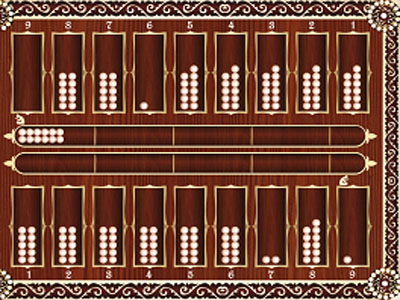 Өз кезегінде бастаушы №1 отауға түскен 1 құмалақты жүреді. Қостаушы №9 отаудағы жалғыз құмалақты 1 отауға салады.